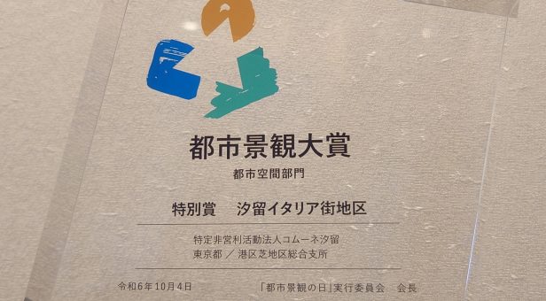 「汐留イタリア街」は惜しくも大賞は逃しましたが、大賞に劣らない特別賞を受賞いたしました。